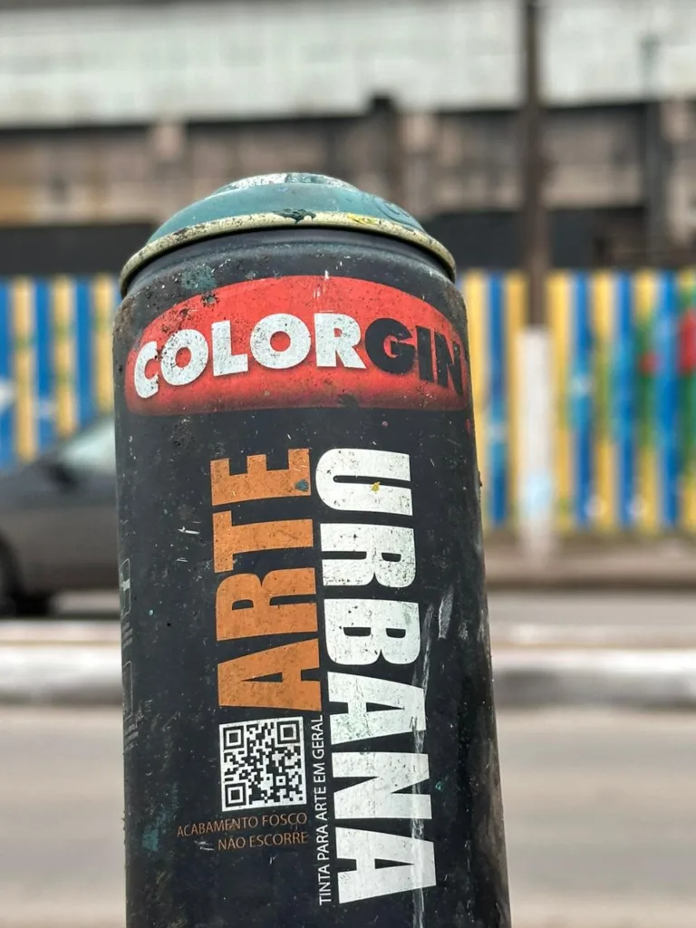 Foram utilizados mais de 300 sprays e 10 latas de tinta de 18 litros cada, durante a execução do projeto.