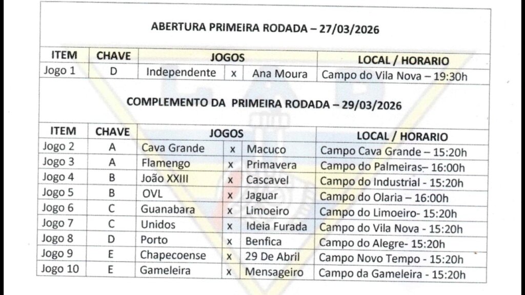 A festa continua no domingo, quando outros nove jogos completam a primeira rodada, espalhando o clima esportivo por diversos bairros.