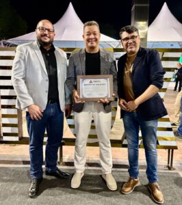 Vereador Marcus Fernandes entrega Moção de Aplauso ao arquiteto Joel Lima durante a ExpoInox 2025