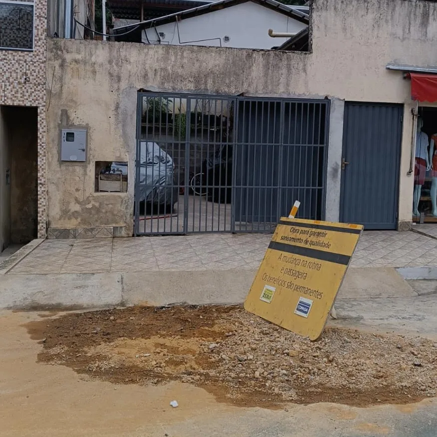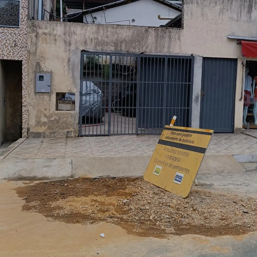O morador afirma ter ligado inúmeras vezes para a Copasa, porém a empresa não fornece nenhuma solução. Ele relata que a equipe esteve lá ontem, em 12 de setembro, e removeu apenas o excesso de terra. A placa que está causando obstrução não foi removida; a COPASA apenas cobriu com terra, sem compactá-la, o que representa um perigo, pois há o risco de afundamento ao tentar passar.