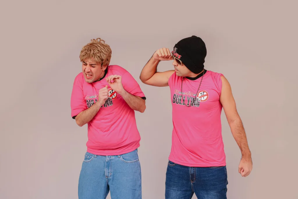 Com 50 minutos de duração, o público é envolvido por comédia, dança e música. No total, são quatro cenas, nas quais os personagens exemplificam os tipos de bullying e propõem soluções. Além disso, todas as músicas são autorais da Cia Atores de Mar’, desenvolvidas especialmente para a peça. Fortalecendo a missão da companhia, após o término do espetáculo, ainda ocorre um momento de troca de experiências com os alunos que procuram o elenco para contar situações vivenciadas com o bullying. “Essa é a nossa missão e a mensagem vai chegando em quem mais precisa”, conclui Patrick Moraes.