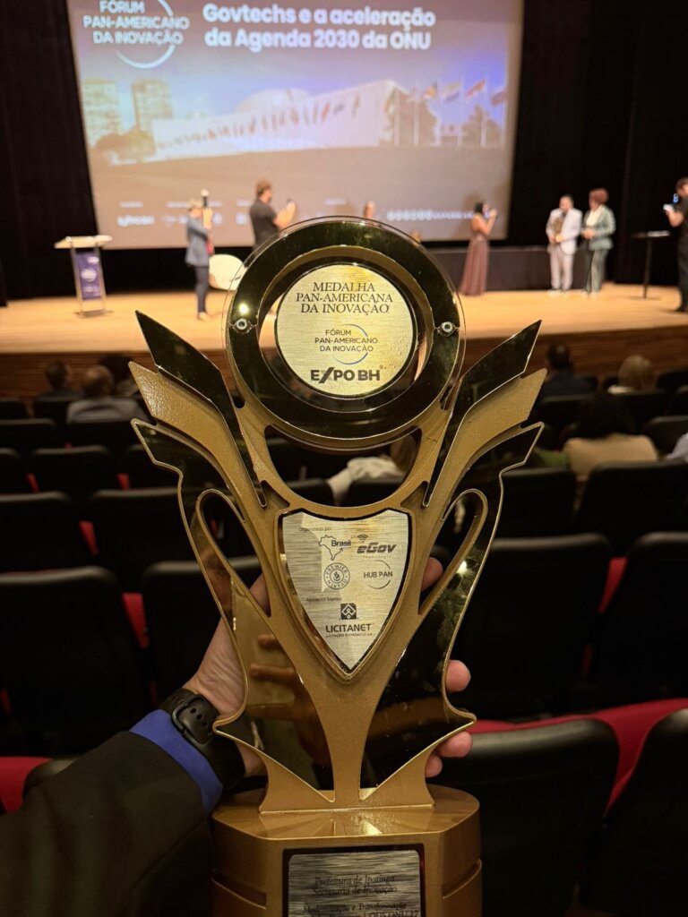 A Prefeitura de Ipatinga, por meio da Secretaria Municipal de Inovação e Tecnologia (SEMIT), conquistou nesta quarta-feira (08) a Medalha Pan-Americana da Inovação, durante o Fórum Pan-Americano da Inovação, na EXPO BH 2026, realizada no Minas Tênis Clube, em Belo Horizonte.