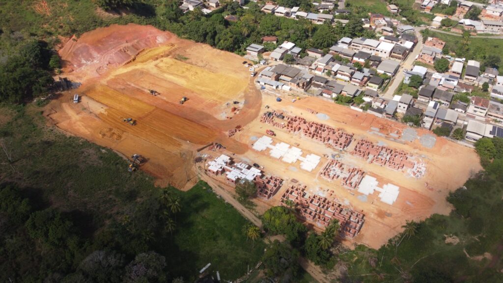 “Estamos com várias frentes de serviço em andamento. No Fabriciano 1, já temos blocos com alvenaria no primeiro pavimento e vamos bater a laje ainda nesta semana. No Fabriciano 2, finalizamos a terraplanagem e começamos a marcação dos blocos para iniciar os ADEES. Também estamos estruturando toda a parte de logística e acolhimento da equipe, com alojamentos, cozinha e áreas de descanso, porque temos muitos trabalhadores de fora e também da região. O objetivo é garantir um ambiente de trabalho seguro, funcional e humano”, explica a engenheira Ana Perdigão, responsável técnica da obra.