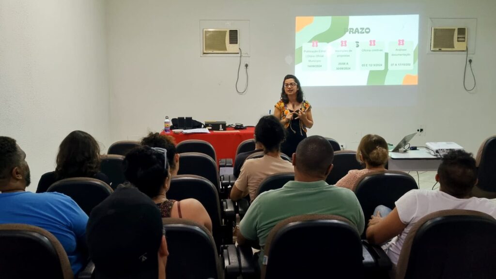 Neste período de inscrições de projetos, com objetivo de melhor qualificar e esclarecer dúvidas dos proponentes interessados em ter seu projeto selecionado no Edital de Chamamento Público da Lei Aldir Blanc2, a Subsecretaria Municipal de Cultura da Secretaria de Educação oferecerá duas oficinas preparatórias e um minicurso de elaboração de projetos culturais. A primeira oficina preparatória foi realizada na quinta-feira (05), no auditório da Secretaria de Educação, sendo ministrada por Leila Cunha. Segue programação das atividades: